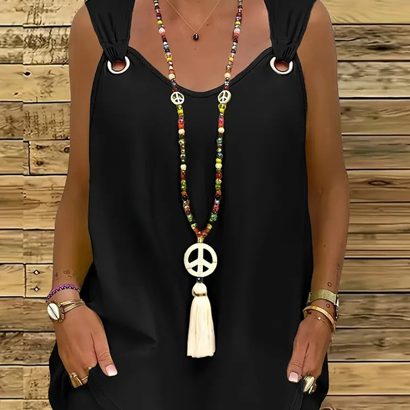 ✔️ Sleeveless top with a V-neck that elongates the neck